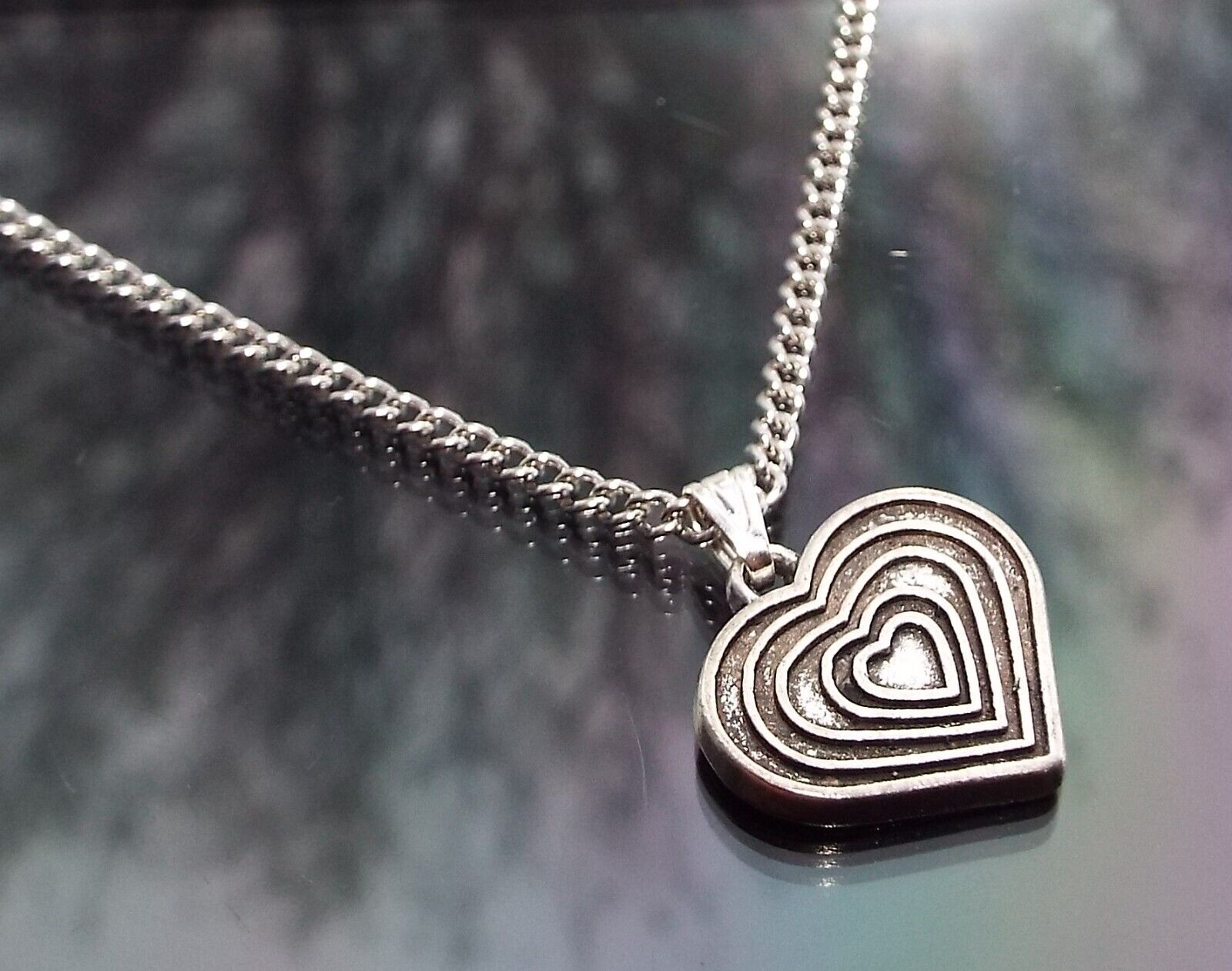 16in Silver plated curb chain necklace with lobster clasp fastener and antique silver tone HEART pendant.